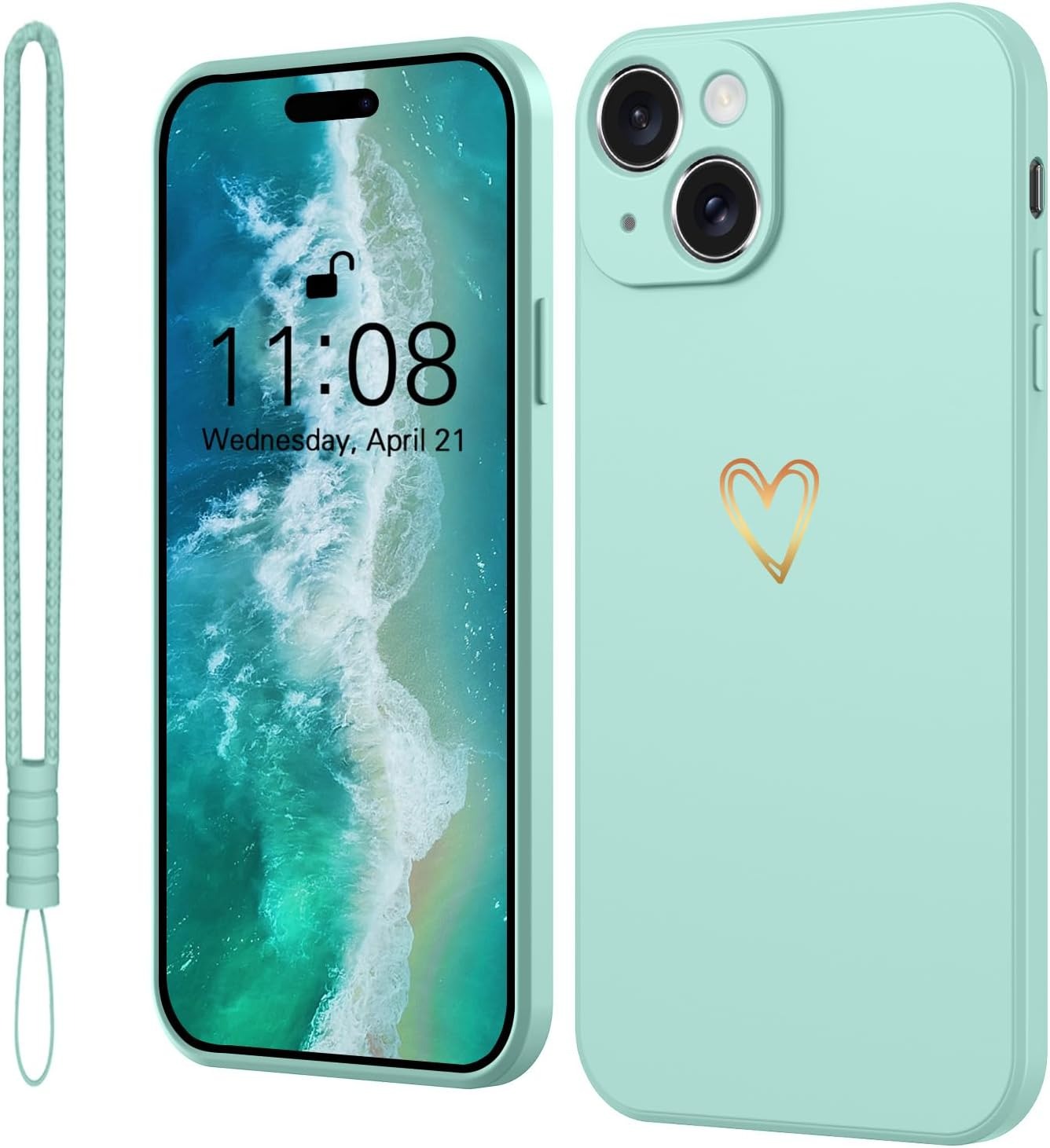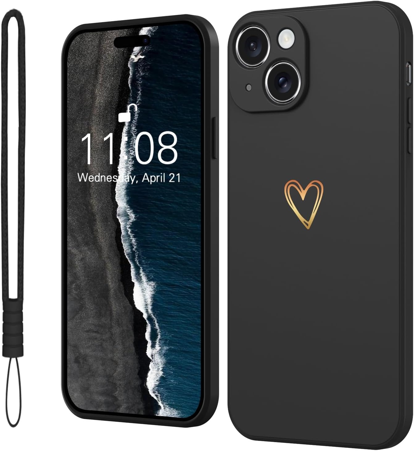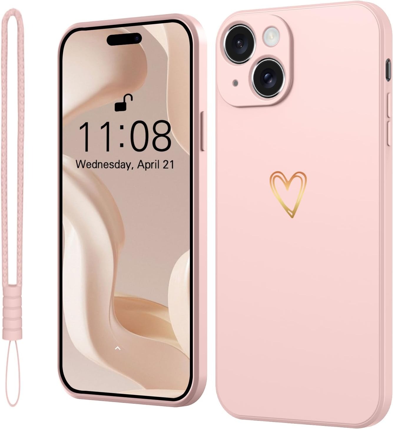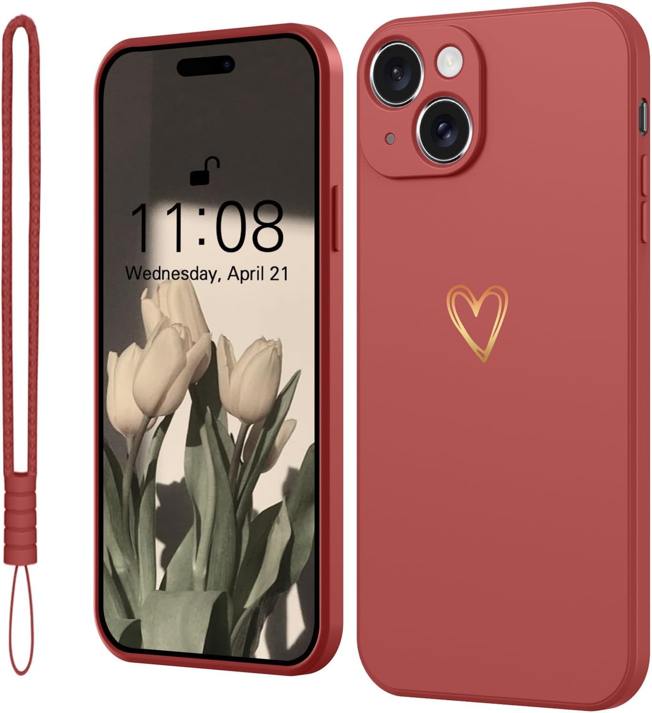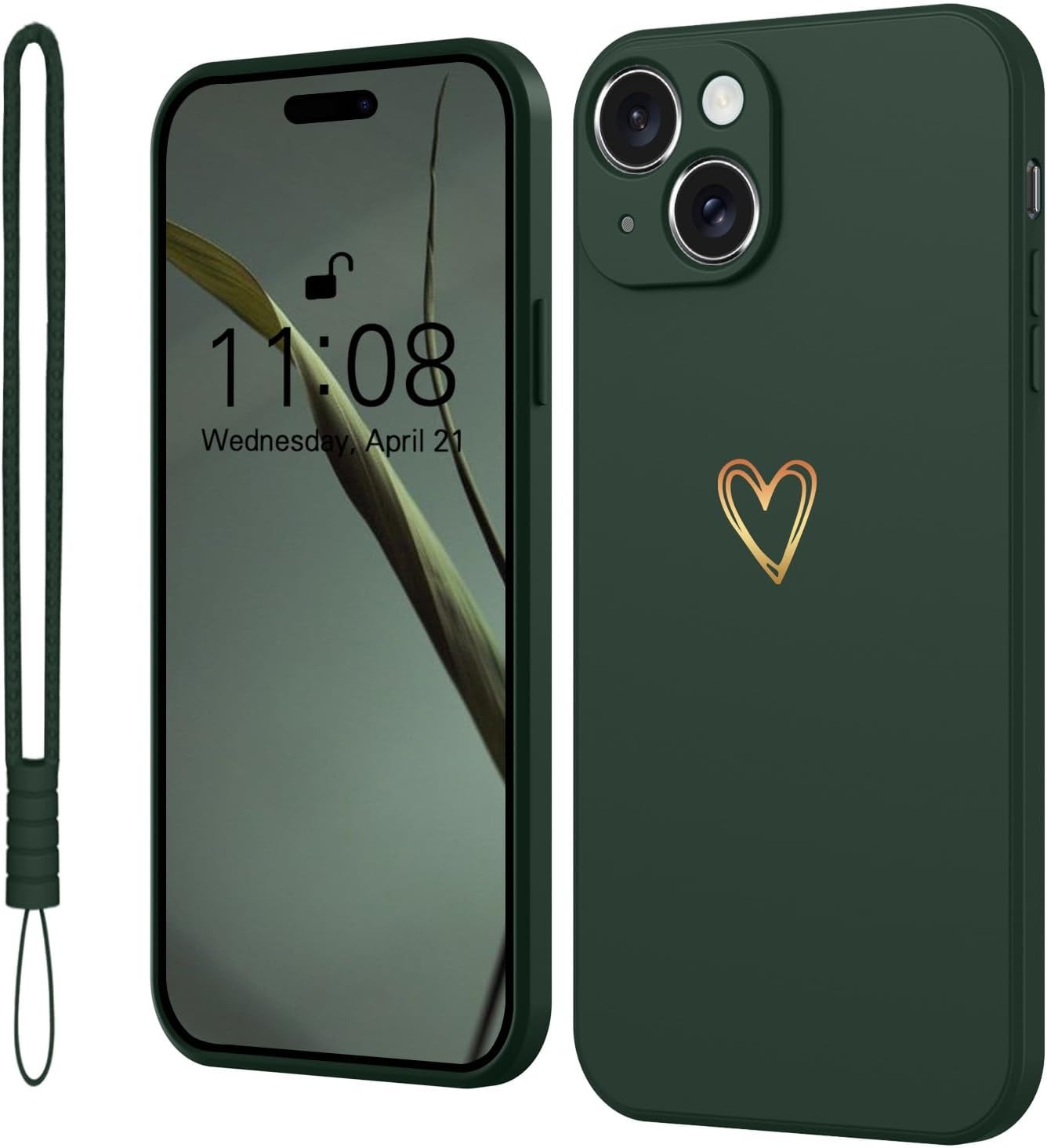 Elestbela Case for iPhone 15 Cell Phone Case Gold Love Heart Silicone, iPhone 15 Case Girls Soft Slim Shockproof Scratch-Resistant Cute Gold Love Protective Case for iPhone 15 6.1″