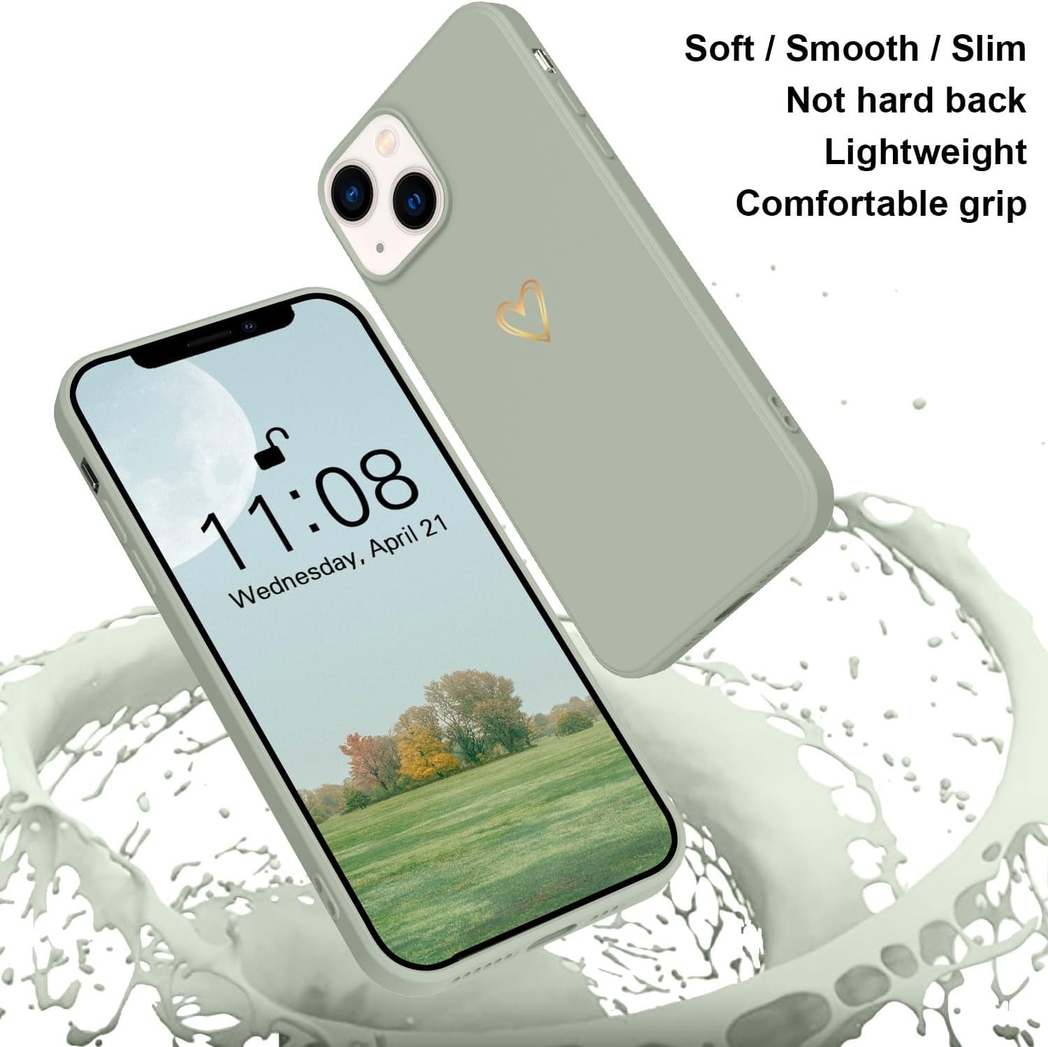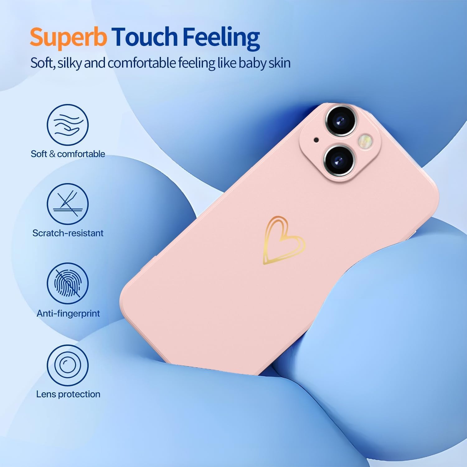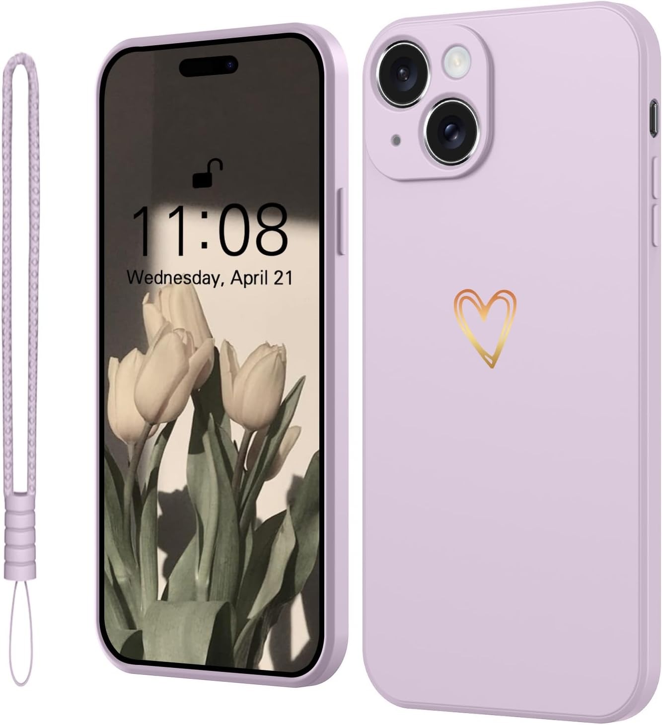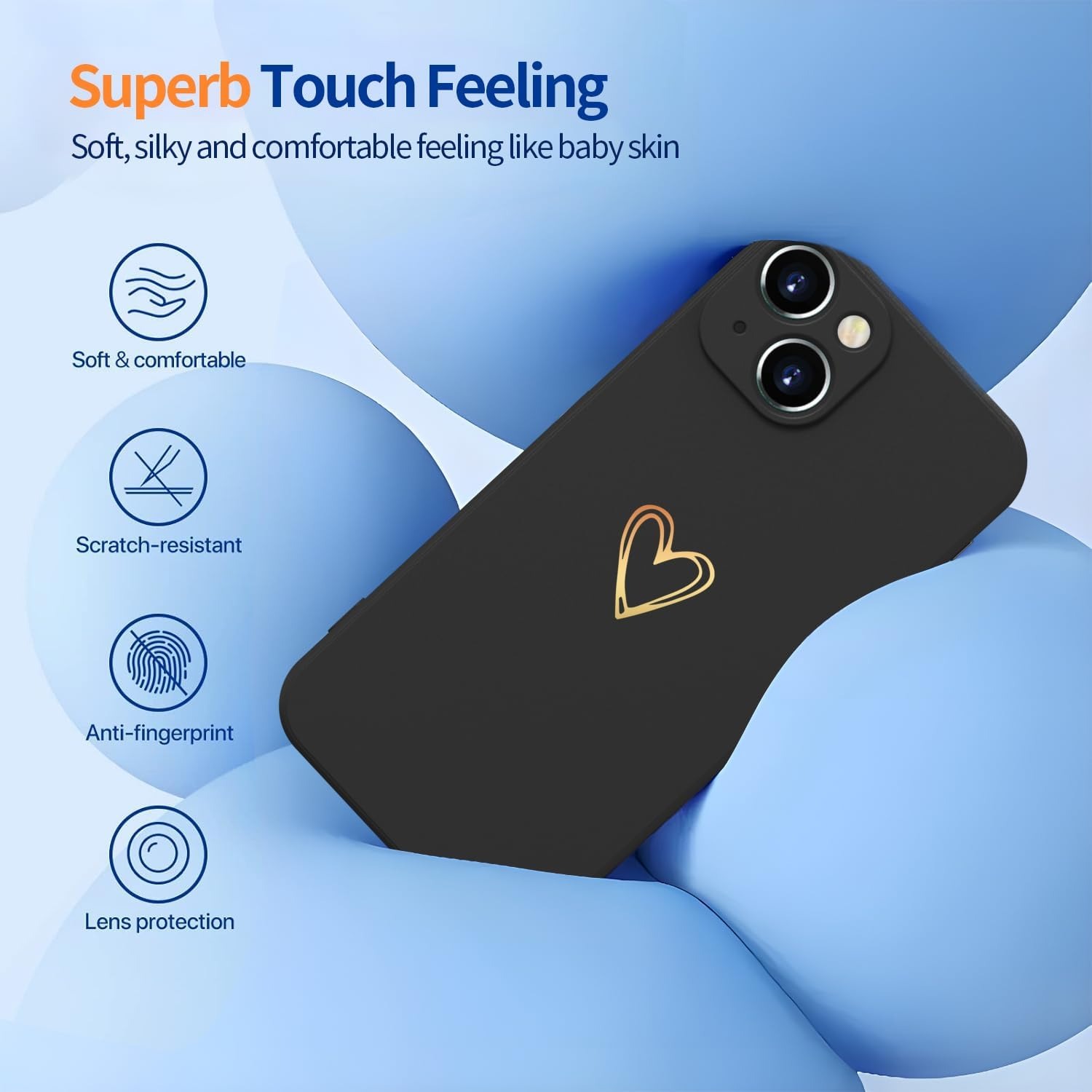 Elestbela Case for iPhone 15 Cell Phone Case Gold Love Heart Silicone, iPhone 15 Case Girls Soft Slim Shockproof Scratch-Resistant Cute Gold Love Protective Case for iPhone 15 6.1″