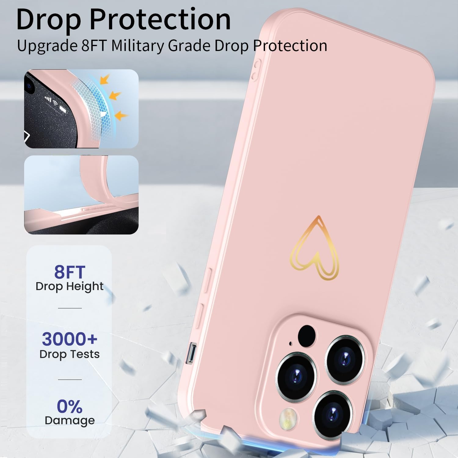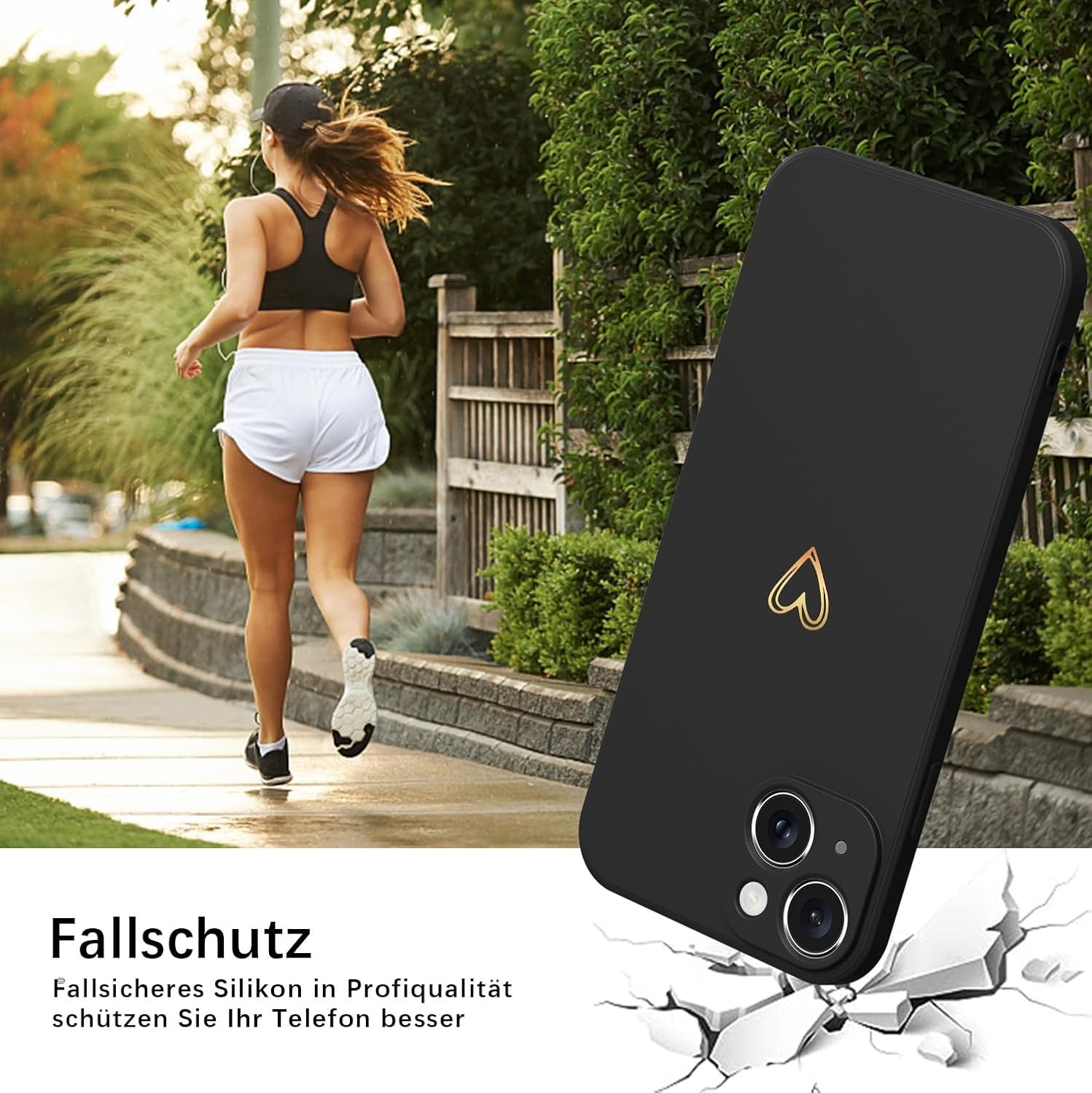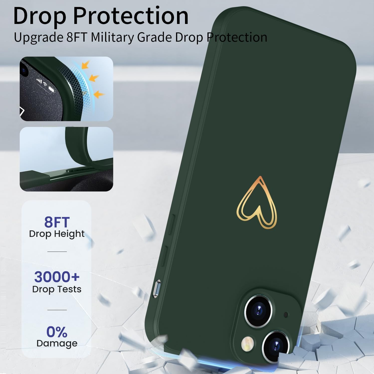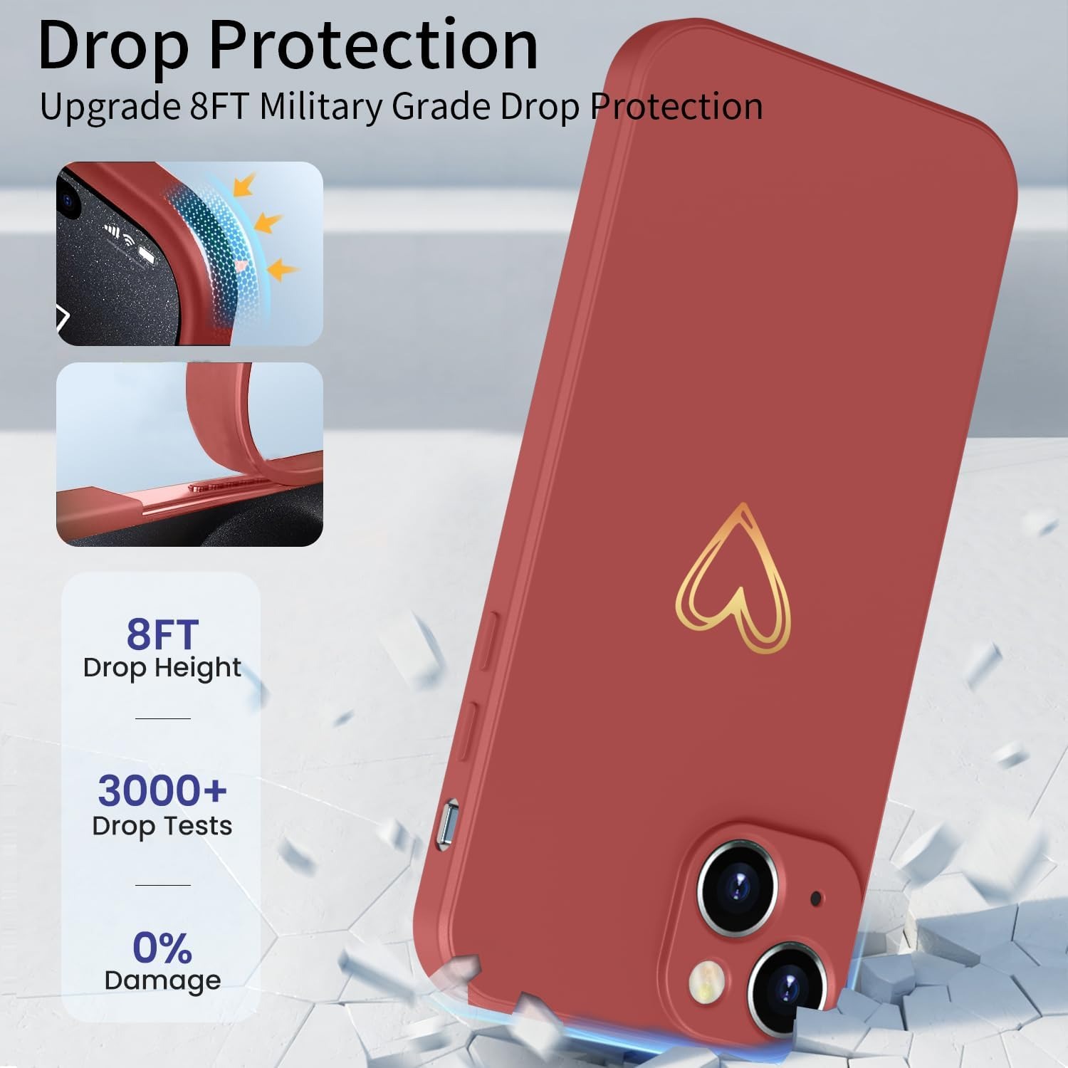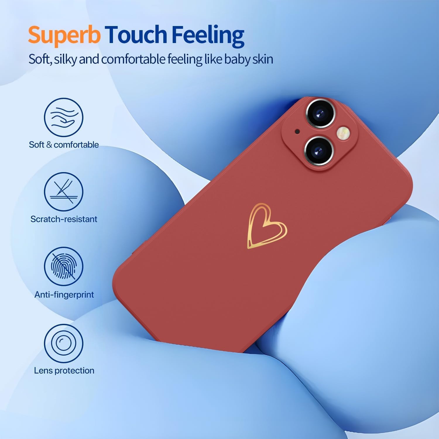Elestbela Case for iPhone 15 Cell Phone Case Gold Love Heart Silicone, iPhone 15 Case Girls Soft Slim Shockproof Scratch-Resistant Cute Gold Love Protective Case for iPhone 15 6.1″