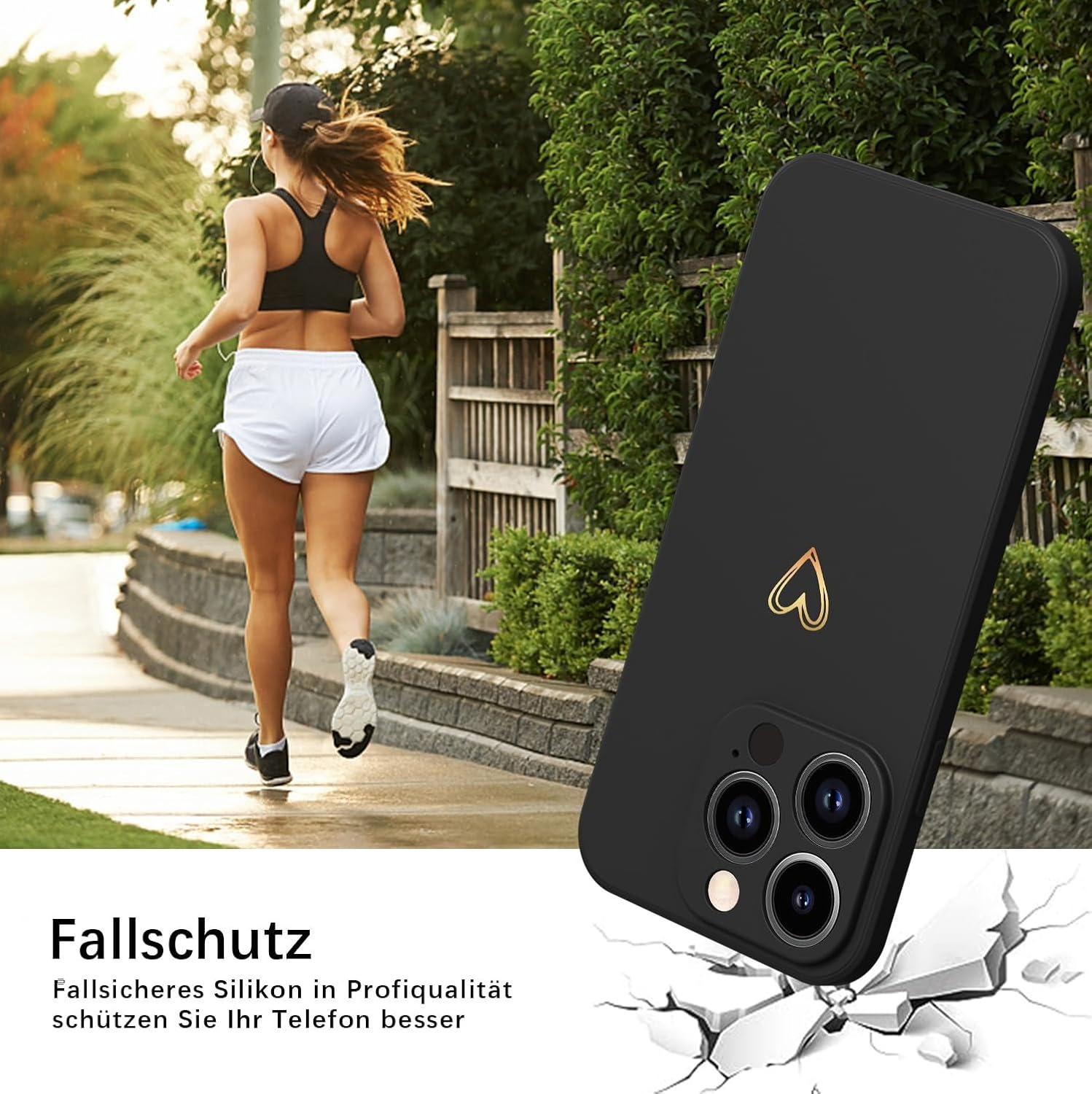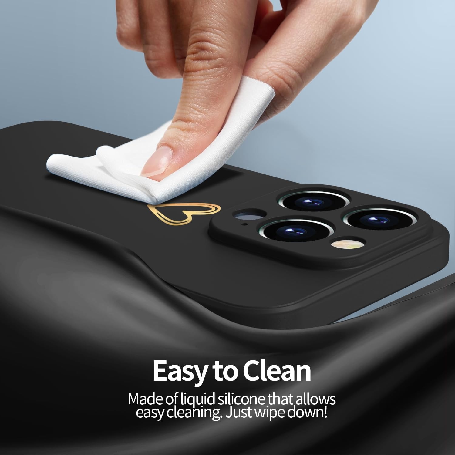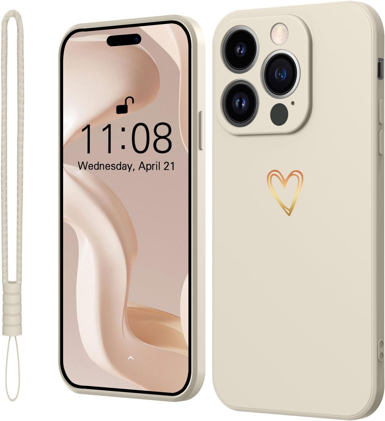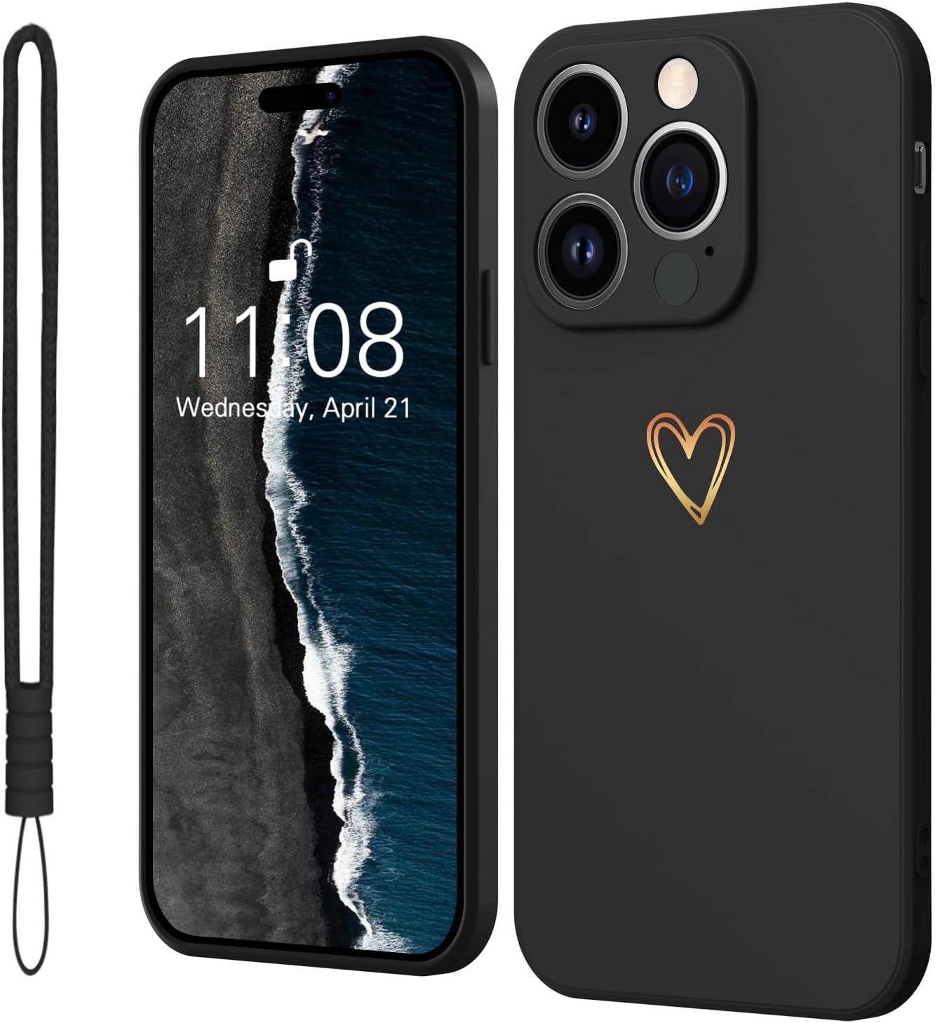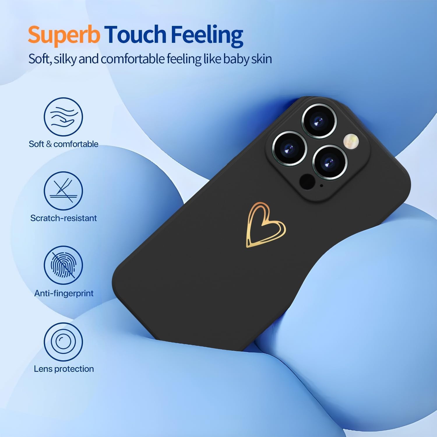 Elestbela Case for iPhone 15 Pro Cell Phone Case Gold Love Heart Silicone, iPhone 15 Pro Case Girls Soft Slim Shockproof Scratch-Resistant Cute Gold Love Protective Case for iPhone 15 Pro 6.1″