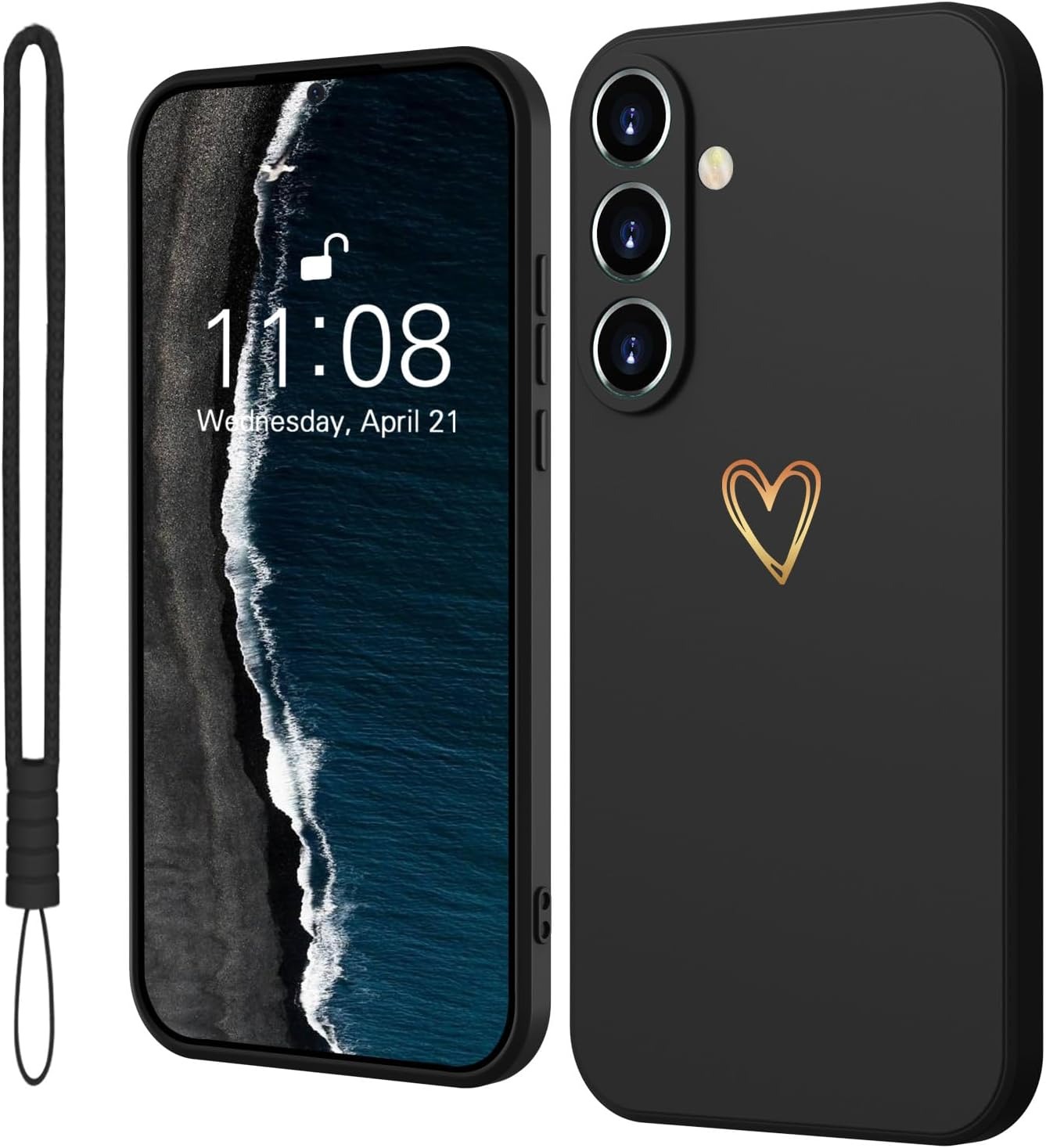 Elestbela for Samsung Galaxy A34 5G Case Silicone with Gold Love Heart, Mobile Phone Case Samsung Galaxy A34 5G Thin Case Slim Scratch-Resistant All-Round Protection Protective Case for Samsung Galaxy A34 5G